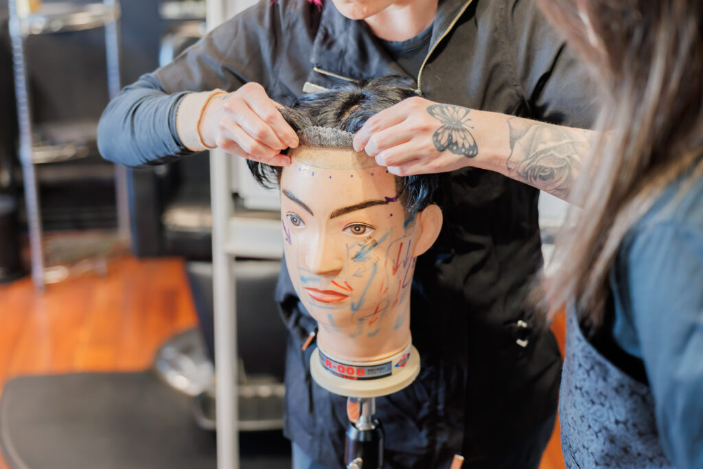 You’ll build on your foundation in salon skills — shampooing, cutting, colouring — while learning specialist techniques in toupee fitting, hair enhancement, and artificial hair maintenance.